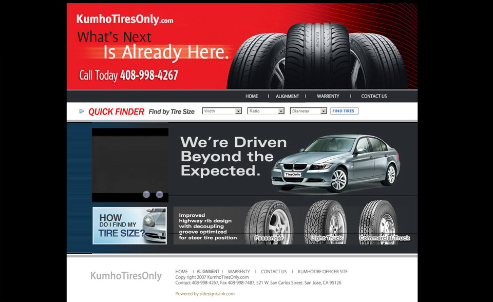 Kumho Tires Onlyuser_admin2017-08-03T18:56:22-07:00 Kumho Tires Only 켈리포니아 산호세 금호타이어 대리점. 차종별 타이어 사이즈를 찾아서 주문 및 서비스 예약. 사이즈 및 가격비교 예약 시스템. Project Details Categories: 스몰비지니스온라인 쇼핑몰 Project URL: www.kumhotiresonly.com Related Projects 유학생용 보험회사 온라인 결제 건강보험회사 온라인 결제 Best price mattress Autogalleryinc 중고차 판매 Interonutrition 건강식품 OEM 회사