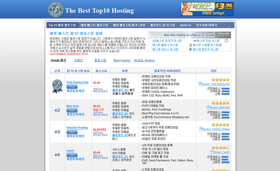 The Best Top10 Hostinguser_admin2017-08-03T18:30:02-07:00 해외 베스트 탑10 웹호스팅 업체 베스트 탑10 웹호스팅에거는 웹 호스팅 기술의 최고 업체 리스트를 제공합니다. 영문 호스팅 회사릐 장/단점을 소개 합니다. 관리자를 통한 손쉬운 업데이트. 베스트 최저가 해외 웹호스팅 회사 Project Details Categories: 기업/회사 Project URL: www.thebesttop10hosting.com Related Projects 뚜레쥬르 미국총본사 및 영업점 신한은행 카나다 KOTRA K-GLOBAL EXPO 2016 KOTRA BUSINESS EXPO 2015 KOTRA BUSINESS EXPO 2014